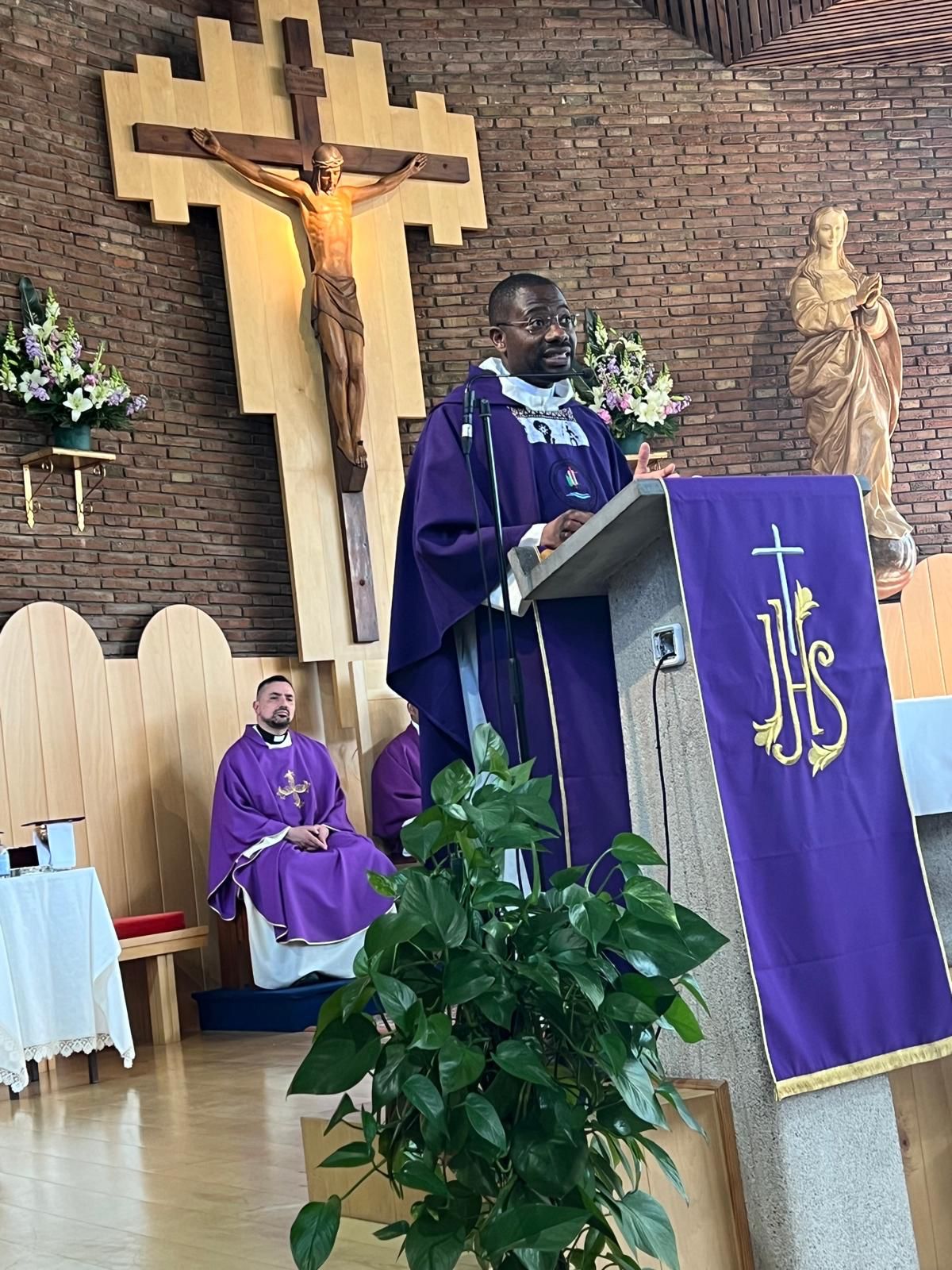 A las 13:15h la santa Misa, en la homilía el P. Francisco Javier capellán de la comunidad Guineoecuatoriana del Valles, destacó que la Biblia relata muchas historias de personas que tuvieron que alejarse de su tierra que les vio nacer, muchos de manera libre siguiendo la llamada De Dios, otros fueron desterrados , y que ser migrantes no tiene que ser motivo vergüenza o de desesperación, porque si Dios mismo se identifica como migrante eso implica que en el encuentro con los migrantes conocemos más de cerca y en profundidad como es Dios, por tanto la migración no sólo es un signo de los tiempos donde Dios nos habla sino donde sale a nuestro encuentro.