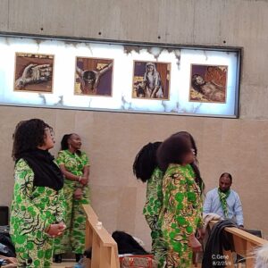 Después de la celebración, el Coro VOCES Africanas invitó a todos los asistentes a una comida, buffet libre de comidas típicas Africanas y con unas actuaciones de cantos y bailes culturales.
